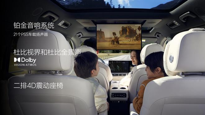 在理想 L9 智能焕新版上,智能座舱的升级围绕家庭用户需求展开,带来了全新的家庭体验。新增的十八点热石揉捏按摩,让用户在车内就能享受热石 SPA 般的舒缓。后排影音体验全面进化,新增的 21.4 英寸后舱娱乐屏显示面积增加约 86%,具备 3K 超清分辨率、800nit 亮度,白天也能清晰可见,还通过了莱茵低蓝光认证,更加护眼。配合 21 个 PSS 高品质扬声器组成的铂金音响系统和支持杜比全景声,以及 4D 震动座椅,无论是独自观影还是全家聚会观影,都能拥有影院级的沉浸感和客厅式的温馨感。此外,为解决二排屏幕增大遮挡后视视野的问题,理想 L9 智能焕新版配备了全新 800 万超清流媒体内后视镜,其采用独立摄像头,视野更广、成像更清晰,有效保障了驾驶视野。